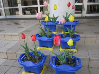 1年生の2学期にみんなで植えたチューリップの花がきれいに咲いています。