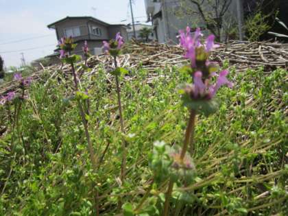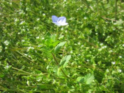 畑の脇には、オオイヌノフグリやナズナ(別名:ペンペン草)などの春の花がたくさん咲いていました。