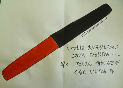 今日は絵を描いてみました。T先生が学校で使っているお気に入りのものです。先生は小学校6年生のとき、「シュッシュッ」と丸付けをする先生に憧れて、このペンを買いました。