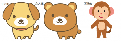 1犬山(いぬやま) 2大熊(おおくま) 3猿払(さるふつ)
