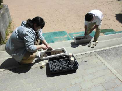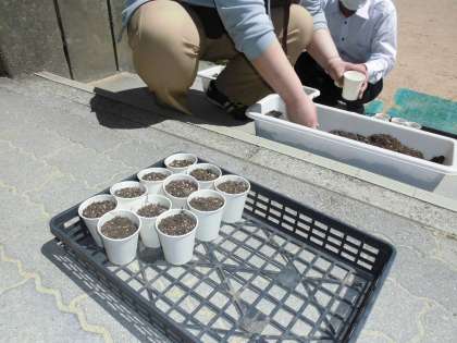 4年生 理科「あたたかくなると」 ヘチマの種植え