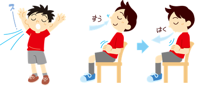体の力をぬいて、ゆっくりと深呼吸をしてみましょう。