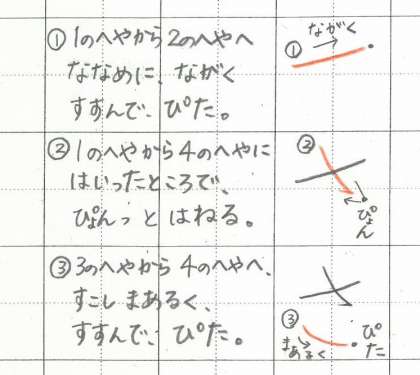 「か」と 「さ」を じょうずに かくこつは、4がつ28にちに しょうかいした ひらがなの ますの 4つのへやを よく たしかめることです。