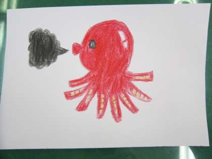 せんせいは 「とまと」 「じぇっとこうすたあ」 「たこ」 を かいてみたよ。