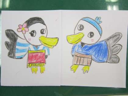 つぎに、 「うーちゃん・かいくん」 「おむらいす」 「ひよこ」 を かいてみたよ。