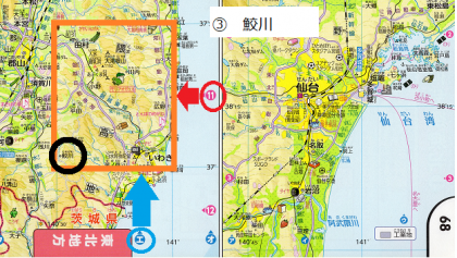 1鯖江(さばえ)「43 オ 4」 2鰺ヶ沢(あじがさわ)「66 ウ 4」 3鮫川(さめがわ)「68 エ 11」