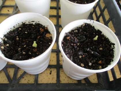 先日たねを植えたヘチマの様子です。40こあるカップのうち、2つが土から芽を出していました。今はまだ子葉の形は分かりませんね。この後、どんな形の葉が出てくるのか楽しみです。