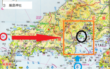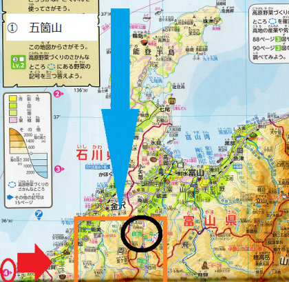 1五箇山(ごかやま)「51 イ 4」 2厳島神社(いつくしまじんじゃ)「37 エ 5」 3熊野古道(くまのこどう)「44 エ 8」