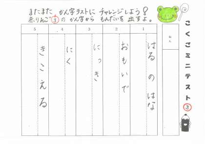 今日は、みんなにかん字テストの3回目にチャレンジしてほしいと思います。