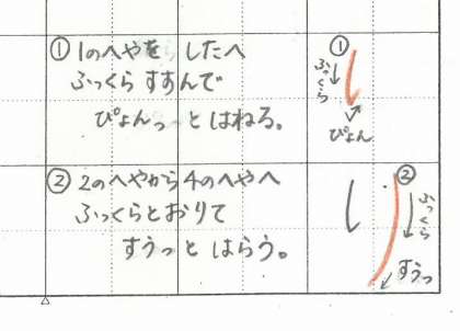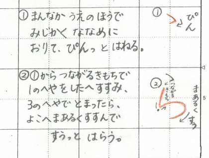 「ら」と「り」は、どちらも 1つめのせんが ぴんっと はねますね。そのときに 2つめの せんの はじまるほうへ はねるように すると じょうずに かけますよ。