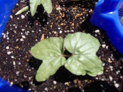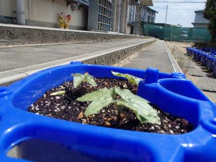 2まいの はっぱが、ぎゅうっと せのびしているみたい。