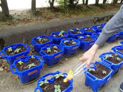 じょうろの くちは がっこうで つけます。