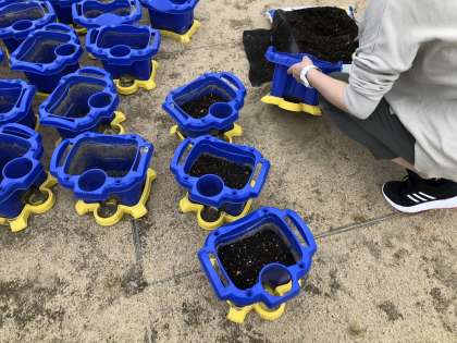 2年生 花を育てる準備をしています。