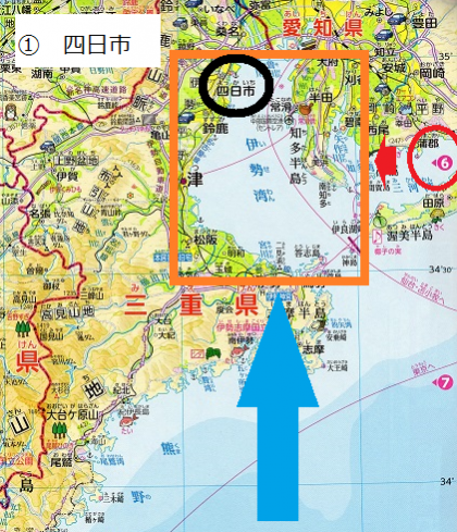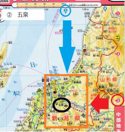 1四日市(よっかいち)「44 カ 6」 2五泉(ごせん)「56 エ 3」3六戸(ろくのへ)「66 オ 4」