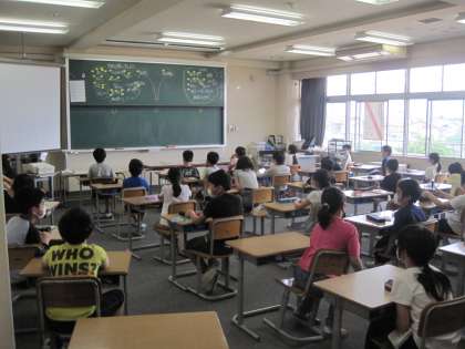 4年生の3組と4組は、授業中の間隔を保つため、3組は音楽室、4組は会議室に教室を移動しました。