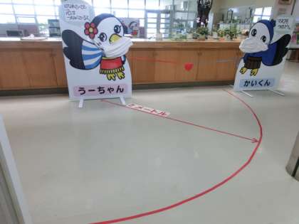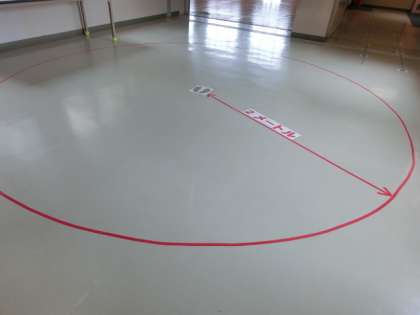 実際、2メートルとはどのくらいの距離感覚なのでしょうか?2メートルの感覚を体感できるよう、校内に2メートルゾーンをつくりました。