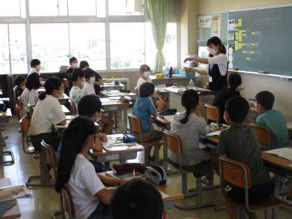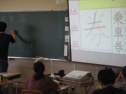 授業が始まり、学習は順調に進んでいます。理科では、燃え続けるために必要なことを考えました。教師の実験を見て、意欲的に考えを述べていました。国語科では、漢字を学習しています。スクリーンに大きく映したことにより、細かいところも分かりやすくなります。