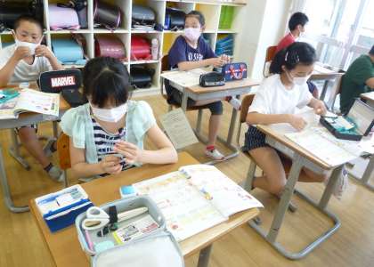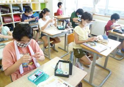 今日は玉結びについても学習しました。「難しい!」「針に糸が通らない!」と悪戦苦闘する様子も見られましたが、楽しく学ぶ子供たちでした。