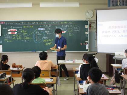 今日は、6年1組に6年4組の担任が来て授業を行いました。また、昨日は各担任がそれぞれ別の学級で本の読み聞かせをしました。子供たちにとって新鮮だったようです。担任にとっても他の学級の子供たちと触れ合い、有意義な時間になりました。