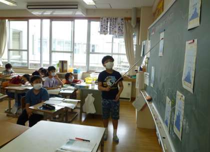 日本各地の気候には、どのような特色があるのか、グラフを見て考えました。南北で気温に違いがあることや、季節風によって降水量に違いがあることなどに気付きました。友達の話を聞き、「ほんとだ!」「何でだろう?」と驚きや疑問の声があがりました。同じ日本になのに、地域によって気温や降水量が違うことに驚いていた子供たちです。