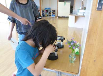 理科の学習で育てているメダカが、たまごを産みました。子供たちは、メダカが大好きで、休み時間には水槽をよく観察しています。今日は4組でメダカのたまごを観察しました。「目が見えるよ」「これは心臓かな」とたまごの様子が分かり、メダカへの興味がますます高まっている子供たちでした。