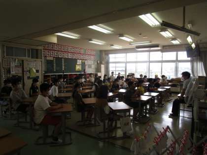いつもの年と異なり、今日、始業式がありました。校長先生からの話をしっかりと聞き、一人一人が2学期へ向けての意識を高めていました。