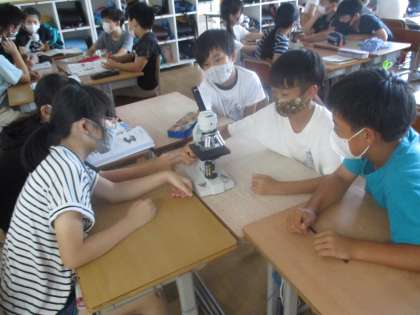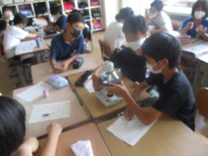 今日は顕微鏡の使い方を学習し、顕微鏡で水の中にいる生き物をのぞいてみました。