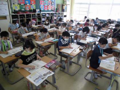 子供たちは、富山県に起きた自然災害や防災に向けての取組等について、資料で調べたり、ノートにまとめたりしました。