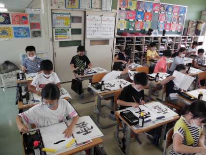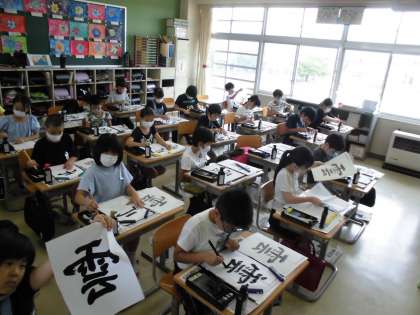 習字で「雲」を書きました。 手本をよく見て、字形に気を付けながら練習しました。