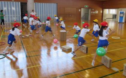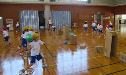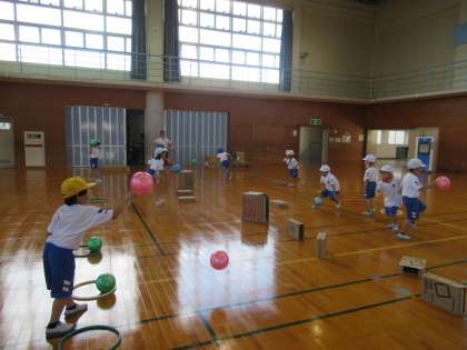 今日は、クラス対抗でどちらが段ボールを多く倒せるかを競いました。