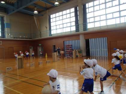 先日、新聞でつくったボールを使って、ボール投げあそびをしました。