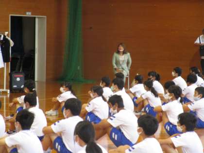 今日は、2018年冬季オリンピックに日本代表として出場されたプロスノーボーダーの広野あさみさんが、6年生を前にお話をしてくださいました。