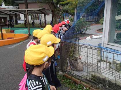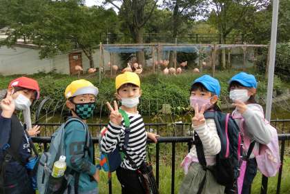 フラミンゴやうさぎ等、いろいろな動物をクラス仲よく見ました。