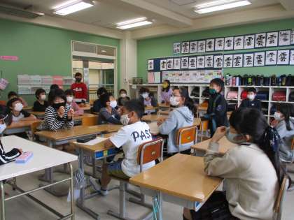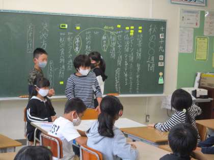 国語では、「役割を意識して話し合おう」という学習をしています。3組では、子供たちの提案から、「秋の○○週間を決めよう」という議題で話合いをしました。司会、記録等の役割を決め、自分たちで進行しました。楽しいイベントの実現に向けて、様々な意見が出されました。