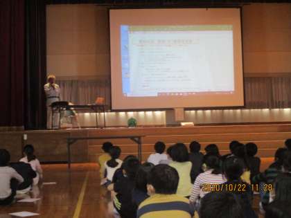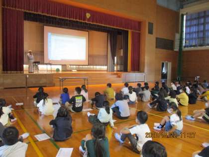 10月21日(木)に総合的な学習で、鵜坂校区の農地・水・環境保全会の方をお招きし、鵜坂の自然についての話をしていただきました。鵜坂の環境を守るために多くの方が力を合わせ、努力していることを知り、子供たちは鵜坂の自然に対する思いをより高めました。