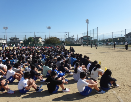 避難訓練の後、BFCの活動について説明し、バッジを配りました。