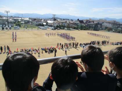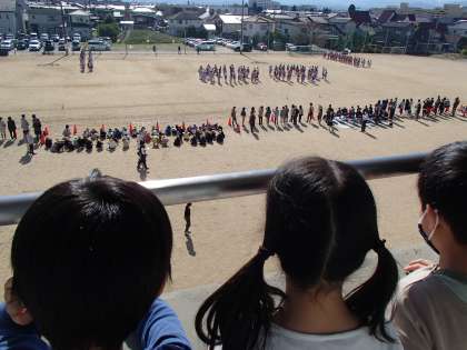 6年生のさんさい踊りを見学しました。音楽に合わせて手拍子をしながら、6年生の踊る姿に見入っていました。終わった後は、「上手だった!」「すごかったね。」と感想を言い合う姿が見られました。