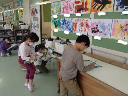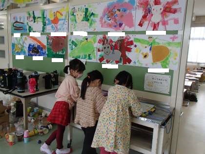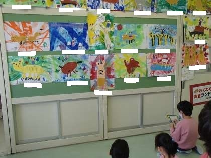 色の塗り方や背景の工夫等に注目しながら、楽しんで友達の作品を鑑賞しました。