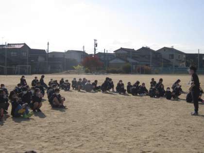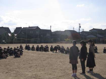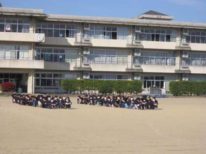 地域の方の協力を得て、よく晴れた今日、6年生で人文字をつくりました。言葉は、6年生にはおなじみのあの言葉です。正解は子供たちから直接お聞きください。