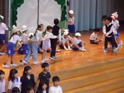 子供たちは、本番前に自分の目当てをもう一度思い返し、友達と「がんばるぞ」と声をかけ合いました。発表後には、「どきどきしたけれど、はきはきとセリフを言うことができた」と話す子供が多かったです。自分のがんばりを素直に語ることができたことに、成長を感じました。