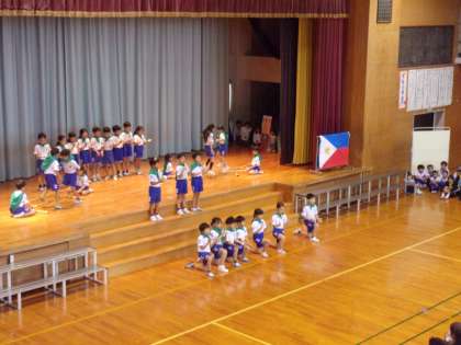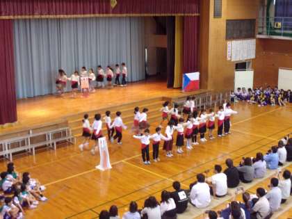 2年生は、音楽科で学んだ2拍子と3拍子のリズムを生かした発表をしました。「いるかはざんぶらこ」と「山のポルカ」はダンス、「マンボNo5」は合奏、「お祭り」は群読というの4つのグループに分かれました。どのグループも、練習の成果を発揮した発表になりました。