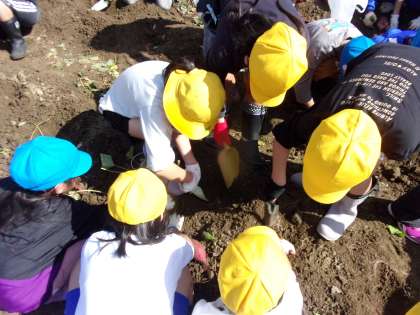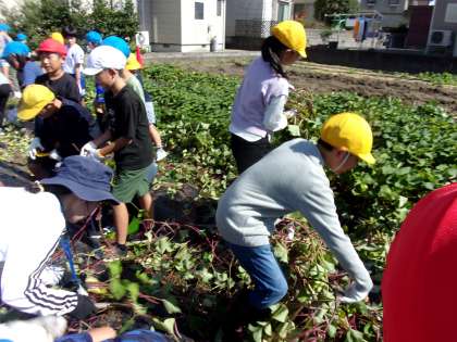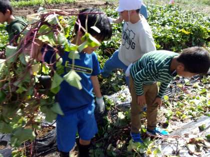 3年生と一緒にさつまいも掘りをしました。4年生は、さつまいもが掘りやすいようにつるを抜いて運ぶ作業をしました。さつまいもを掘るときには、上学年として3年生に「手伝おうか」など優しく声をかけて協力する姿がたくさん見られました。