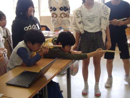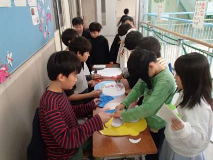 うさかっ子タイムに、6年生が企画した秋祭りに参加しました。射的や福笑い、輪投げの屋台が出ており、終わりには折り紙で作った景品をもらいました。2年生は楽しそうに遊び、6年生に「ありがとう」と感謝の気持ちを伝えていました。