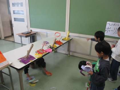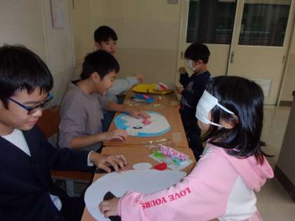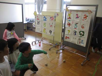 6年生が考えてくれた秋祭りに参加しました。輪投げ、射的、ボーリング等わくわくする遊びばかりで、1年生はスタンプラリーカードを片手に友達と一緒に楽しんでいました。秋祭りが終わると、ゲームの景品としてもらった品物を抱えて、目を輝かせて1年生教室に戻ってきました。