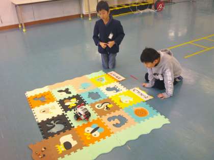 2年生は、20日と21日にかけて地域の方を講師にお招きして、プログラミング学習を行いました。子供たちは、パソコンでロボットを動かすためのプログラミングをしました。ロボットが思い通りに動かなかったときには、「前に進むが1つ足りなかったね」「左ではなくて右に向きを変えないといけないね」など、友達と試行錯誤しながらプログラムを考え直していました。
