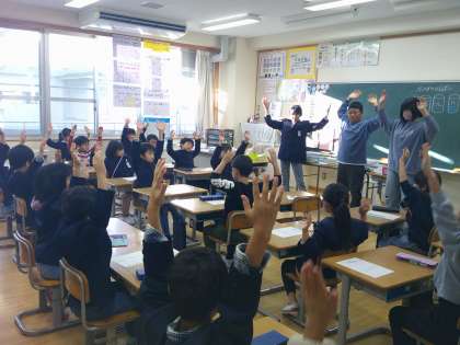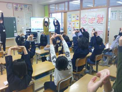 毎朝、ストレッチタイムを行っています。今週は保健委員会の5、6年生さんと一緒に行いました。気持ちよく1日がスタートしています。