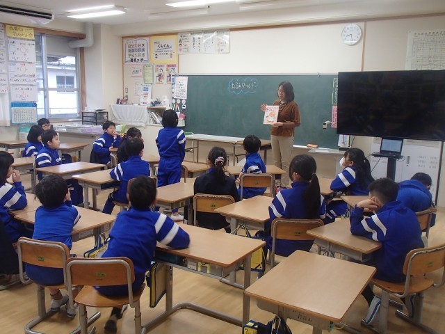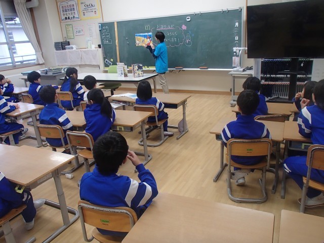 お話ワールドの時間には、読書ボランティアの方から絵本の読み聞かせをしていただきました。子供たちは、集中してお話を聴き、最後には感想を発表しました。