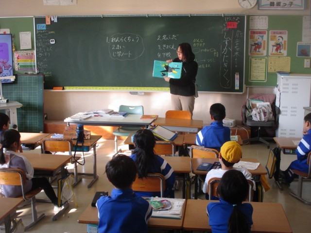 今日のお話ワールドでは、1組「11匹の猫とアホウドリ」、2組「おいもころころ」「キッチンカーです」、3組「キリンですけど」の読み聞かせをしていただきました。子供たちは、ページがめくられるたびに歓声を上げながら楽しみました。