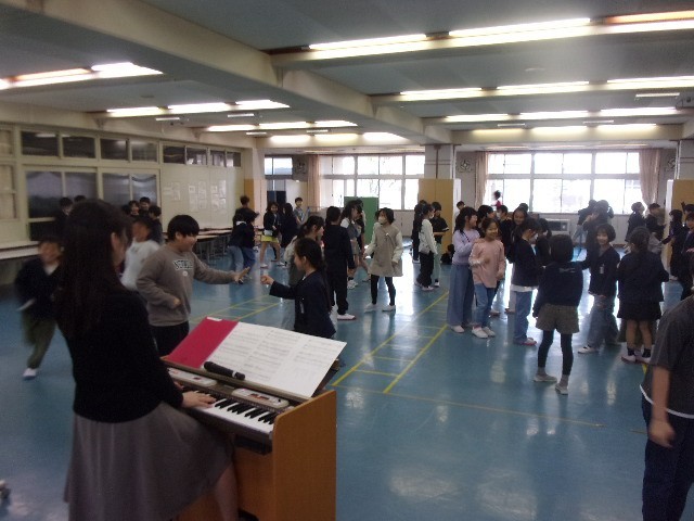 子供たちは互いの歌声を聞き合い、「元気よく歌っていました」「◯組の歌声がとってもきれいでした」と互いのよいところを見付け合いました。
