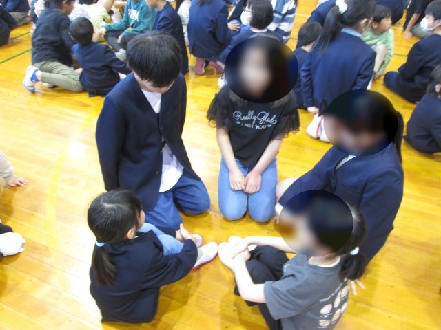 目線を合わせて話しかけたり、困っている1年生に声をかけたりするなど、6年生の優しい姿が見られました。